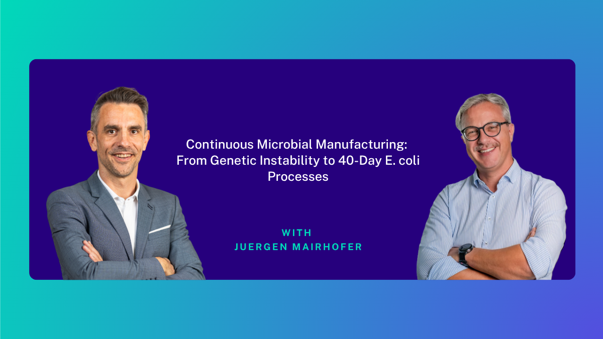 This wraps up part one of our conversation. From growth-decoupled production to the real engineering challenges behind continuous microbial manufacturing, Juergen is giving us a masterclass in rethinking how we scale bioprocesses. And we're just getting started.